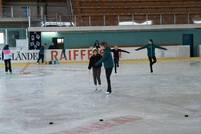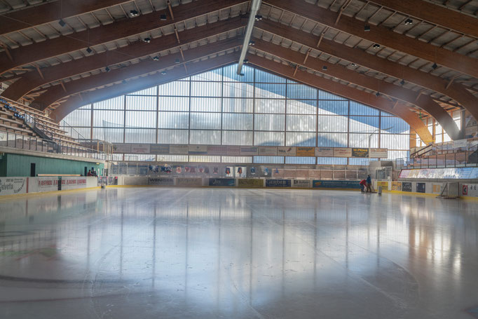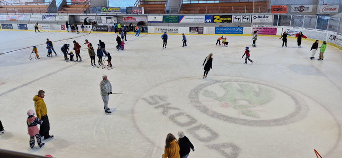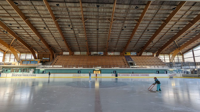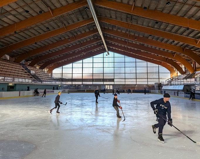 Bei regulärem Betrieb ist 1/3 der Eisbahn für Eishockey abgesperrt.